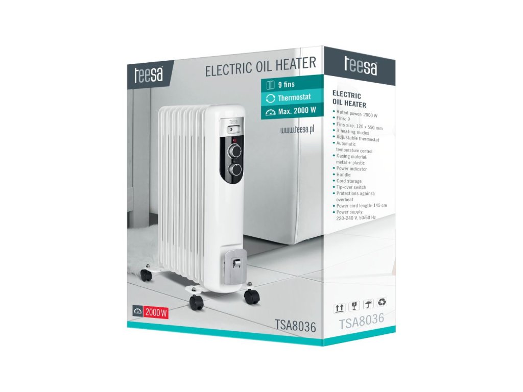 Elektrický olejový radiátor TEESA 2000W (9 rebier)Príkon: 2000W
