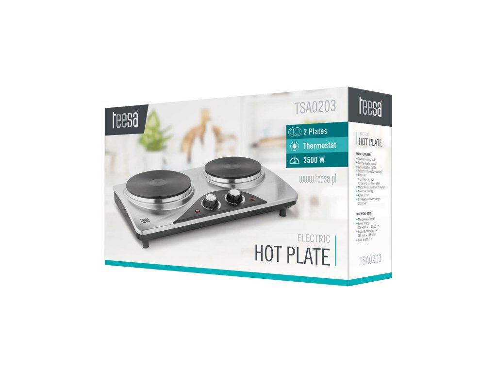 Elektrický varič dvojplatničkový 2500 W, strieborný TEESAHlavné vlastnosti