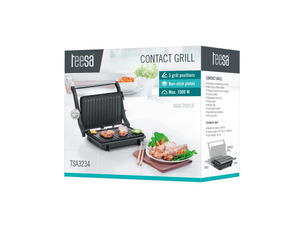 Kontaktný gril Panini 1000 W 3 funkcie TEESA3 polohy grilovania