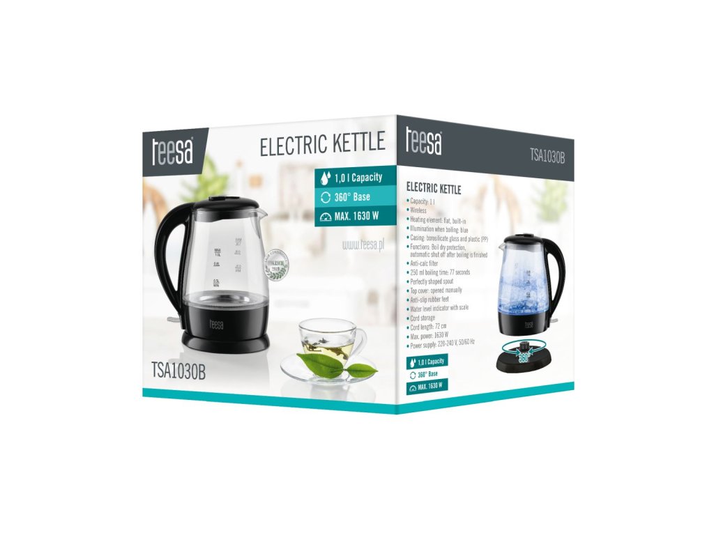 Rýchlovarná kanvica TEESA 1L 1630W čiernaObjem kanvice: 1L