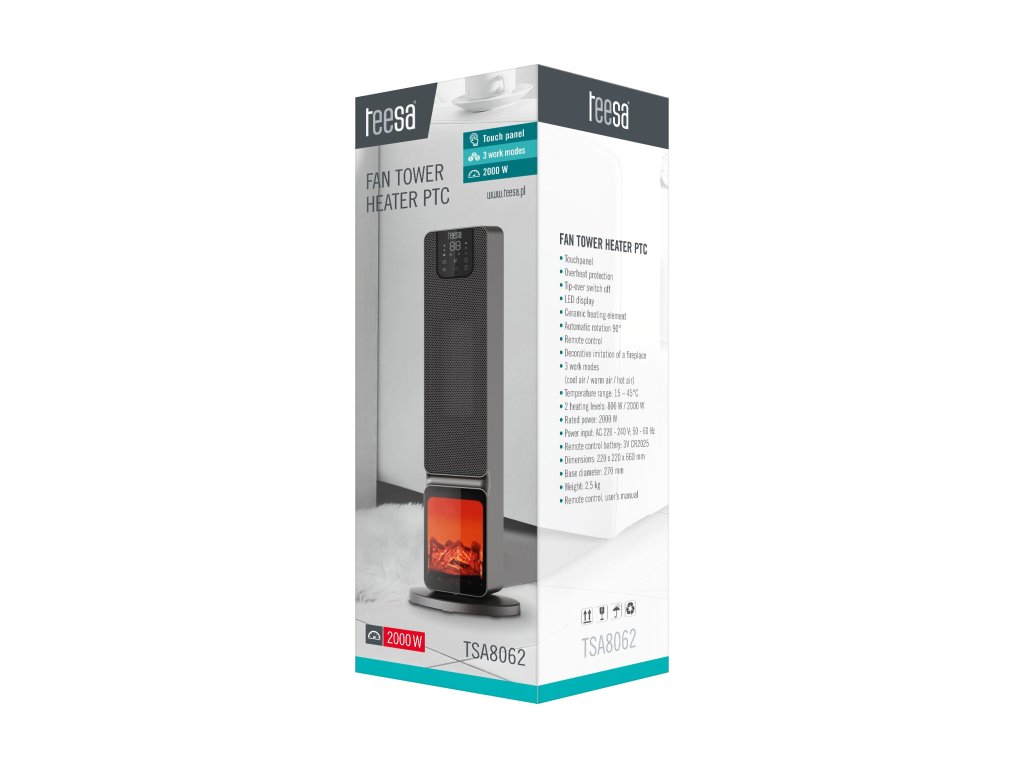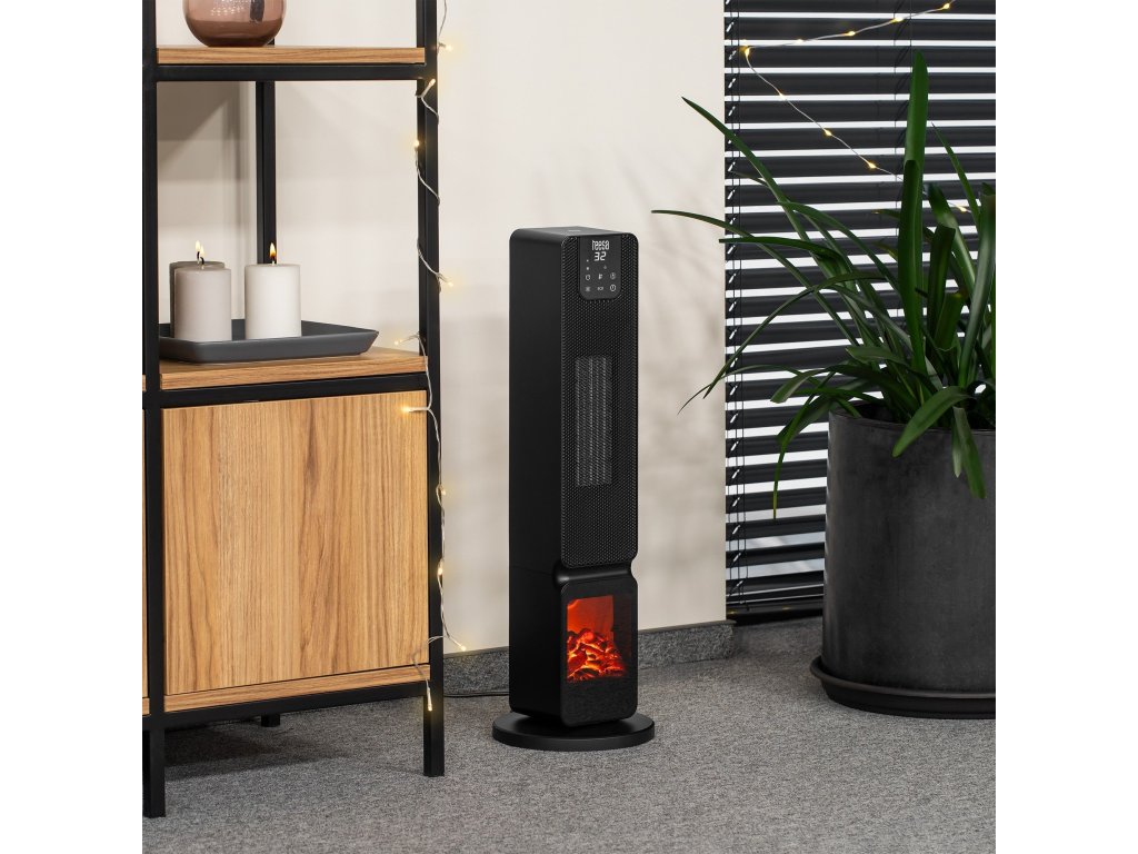 Stĺpový elektrický ohrievač PTC s imitáciou krbu TEESA (800/2000W)- Dotykový panel