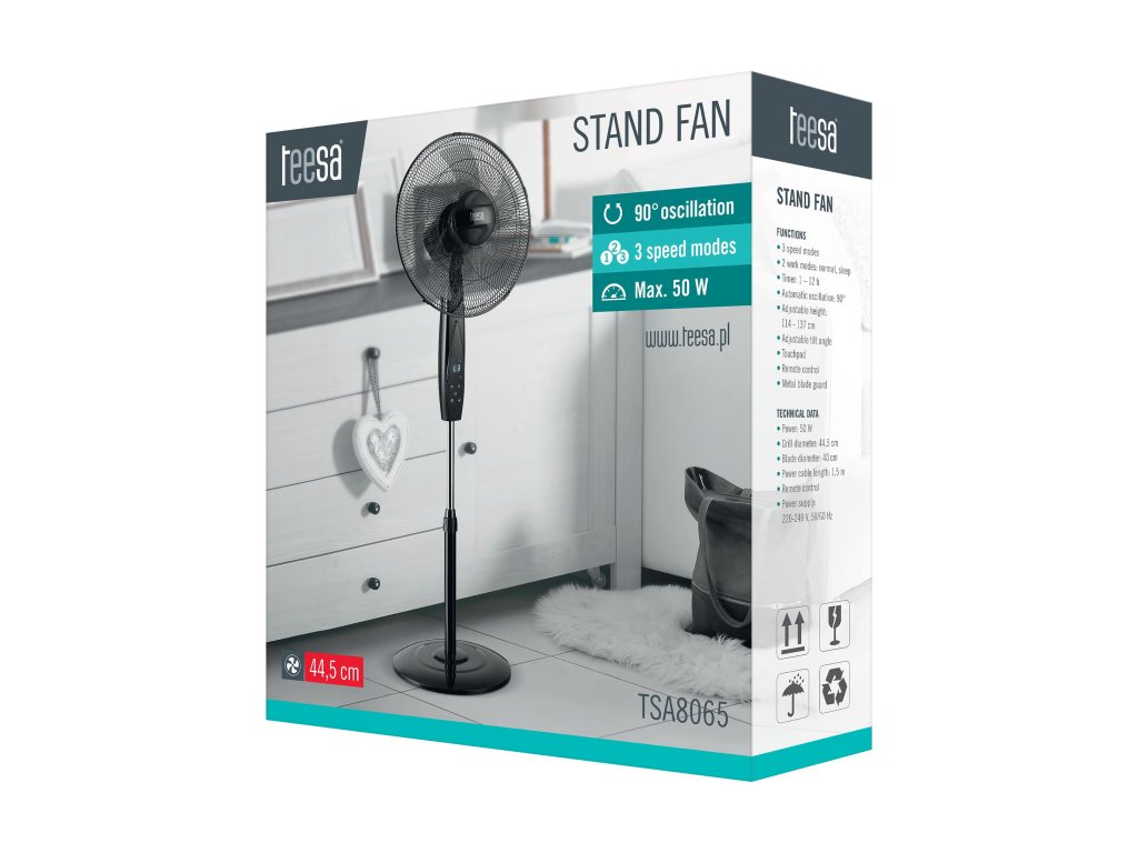 Stojanový ventilátor s diaľkovým ovládaním TEESA čierny