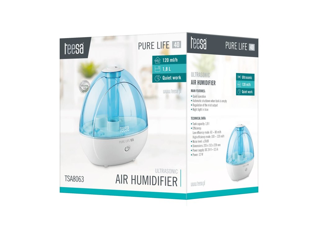 Ultrazvukový zvlhčovač vzduchu PURE LIFE 40 TEESA- Tichý chod