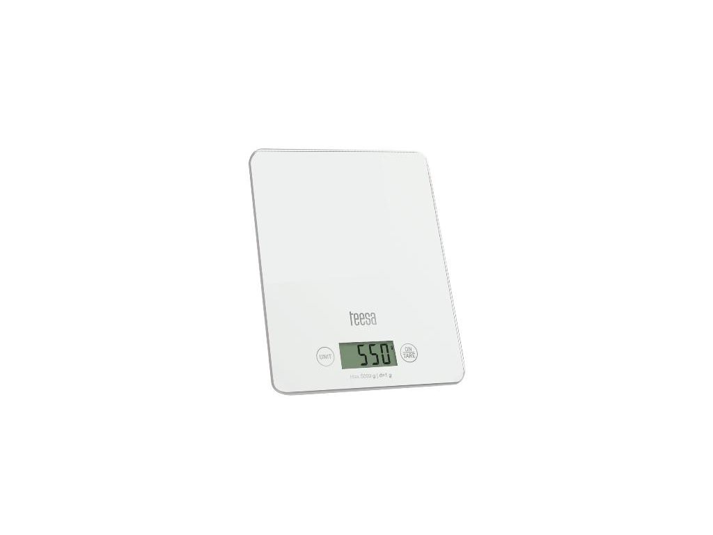 Digitálna sklenená kuchynská váha biela TEESAMaximálne zaťaženie: 5 kg