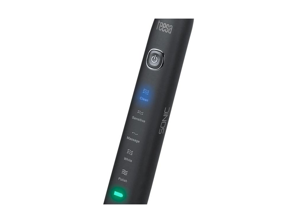 Zubná kefka sonická TEESA SONIC Black5 režimov prevádzky: Clean (čistenie) / Sensitive (jemný) / Massage (masáž) / White (bielenie) / Polish (leštenie)